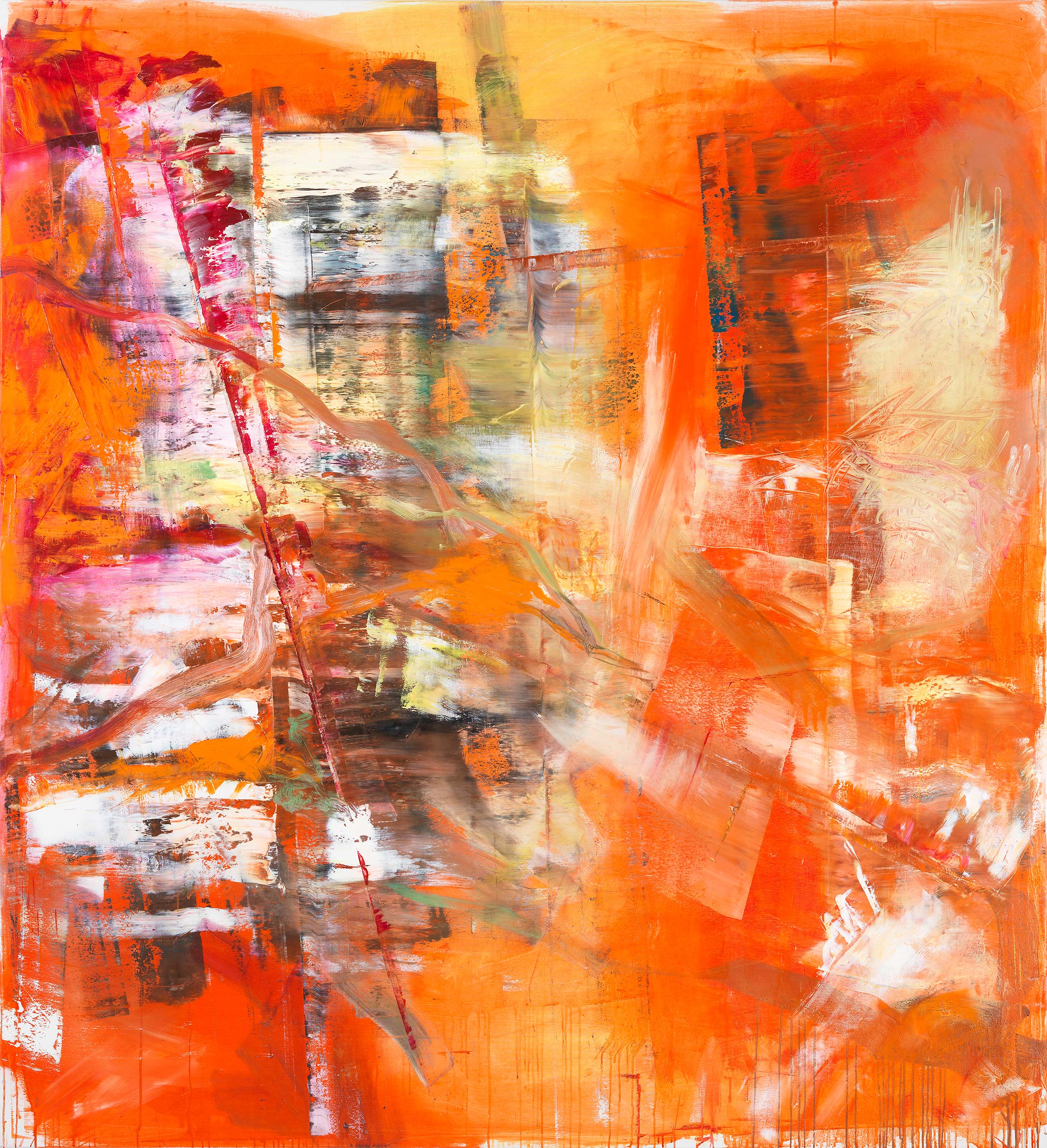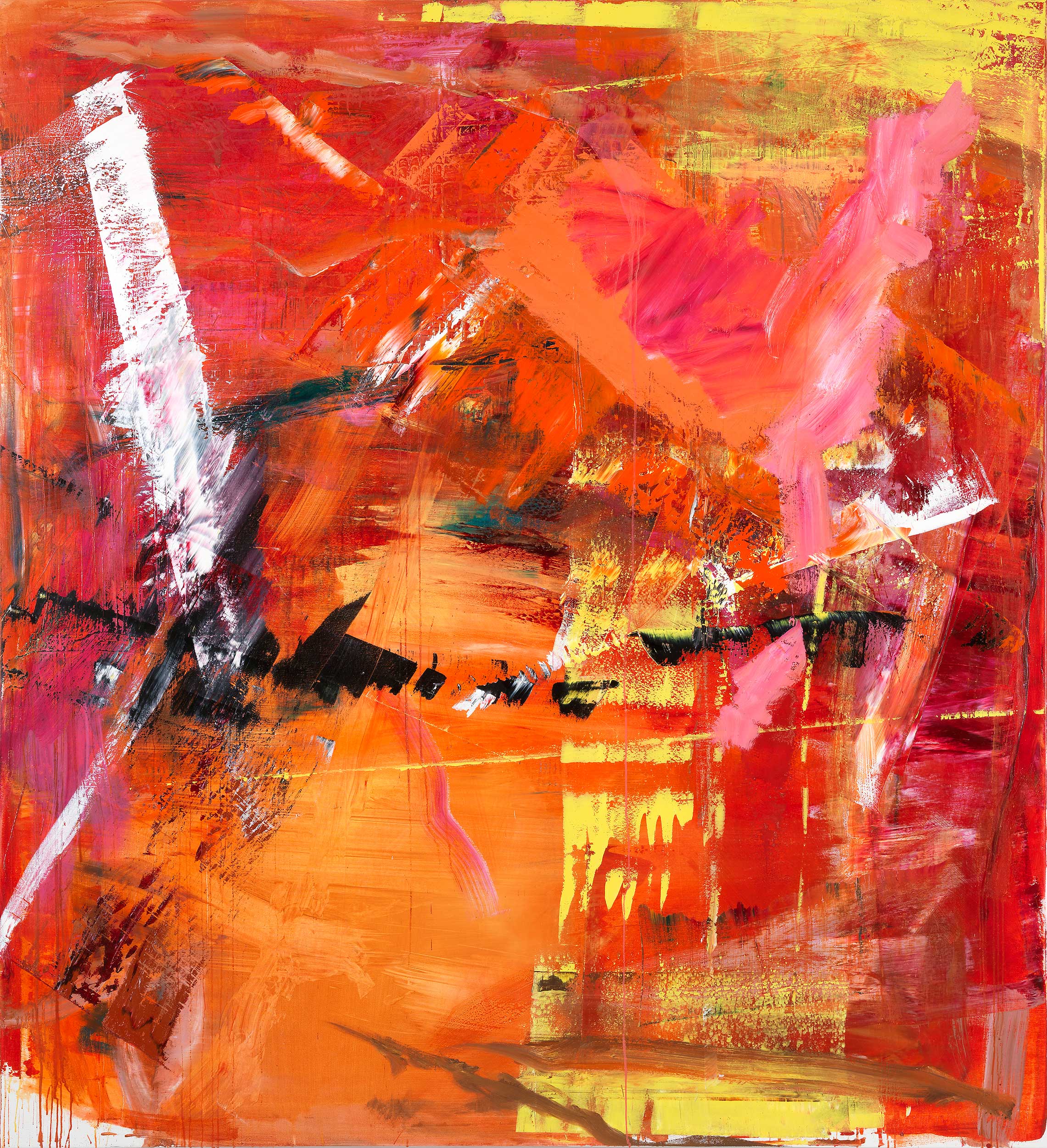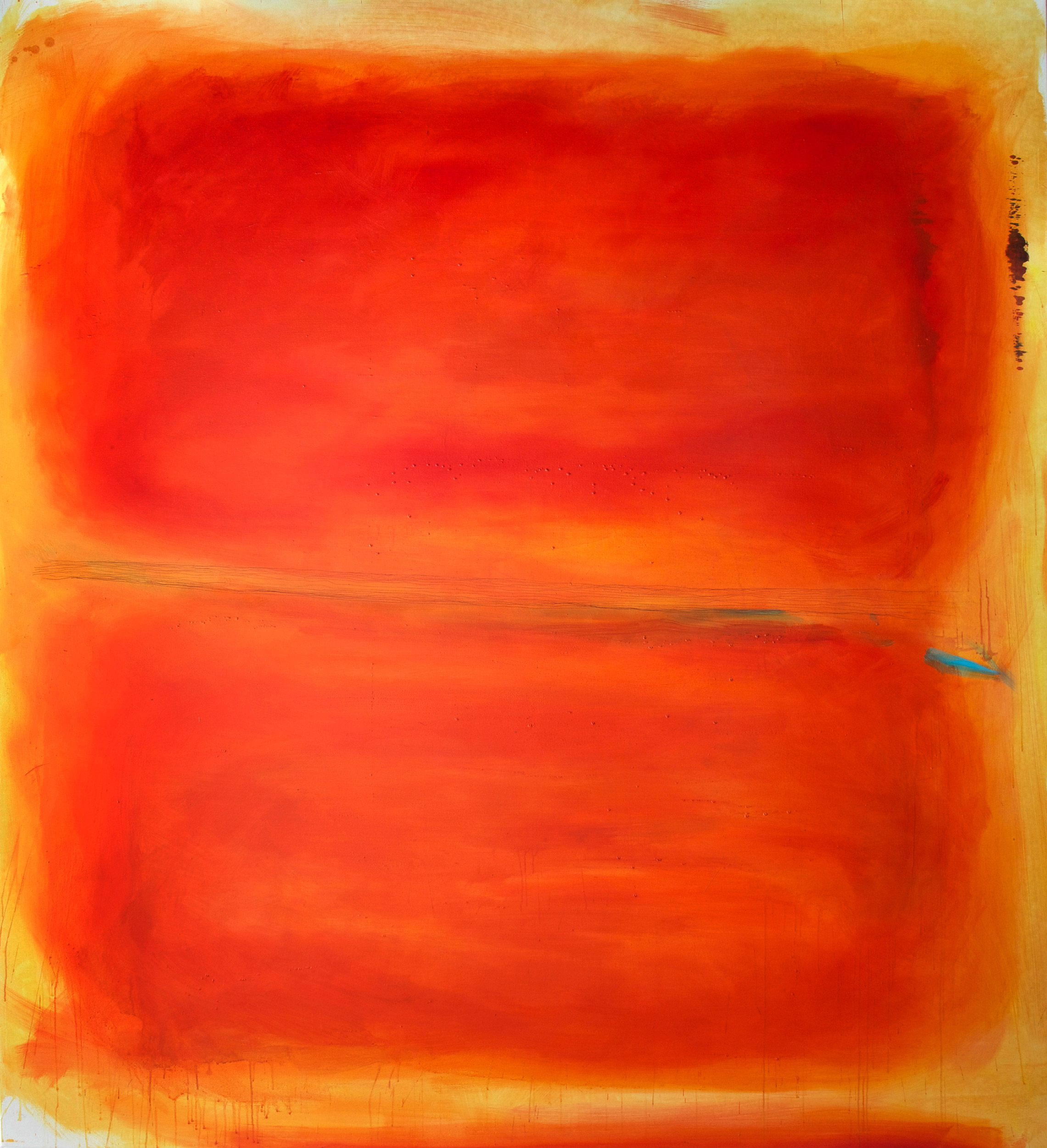 titel: rot braun gelböl auf lackgetränktem gewebe 200 cm × 90 cm2017 güterslohwerkverzeichnis:1037privatsammlung