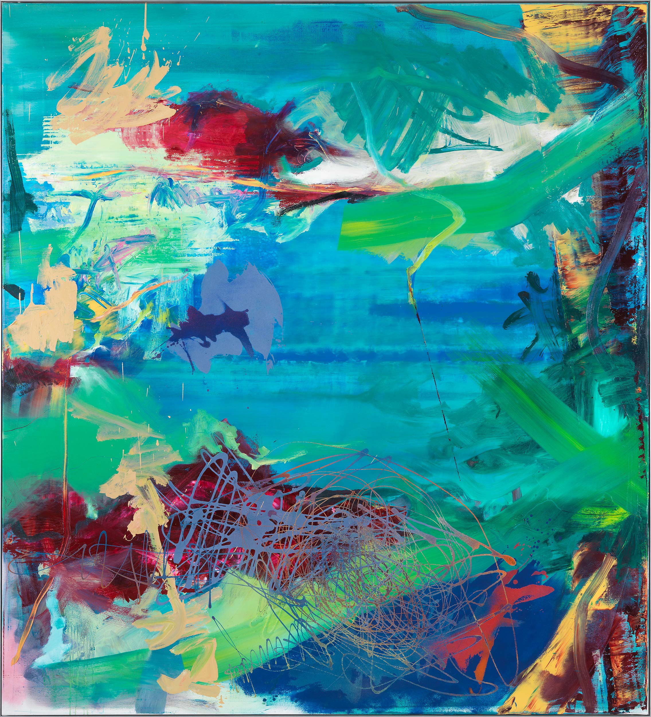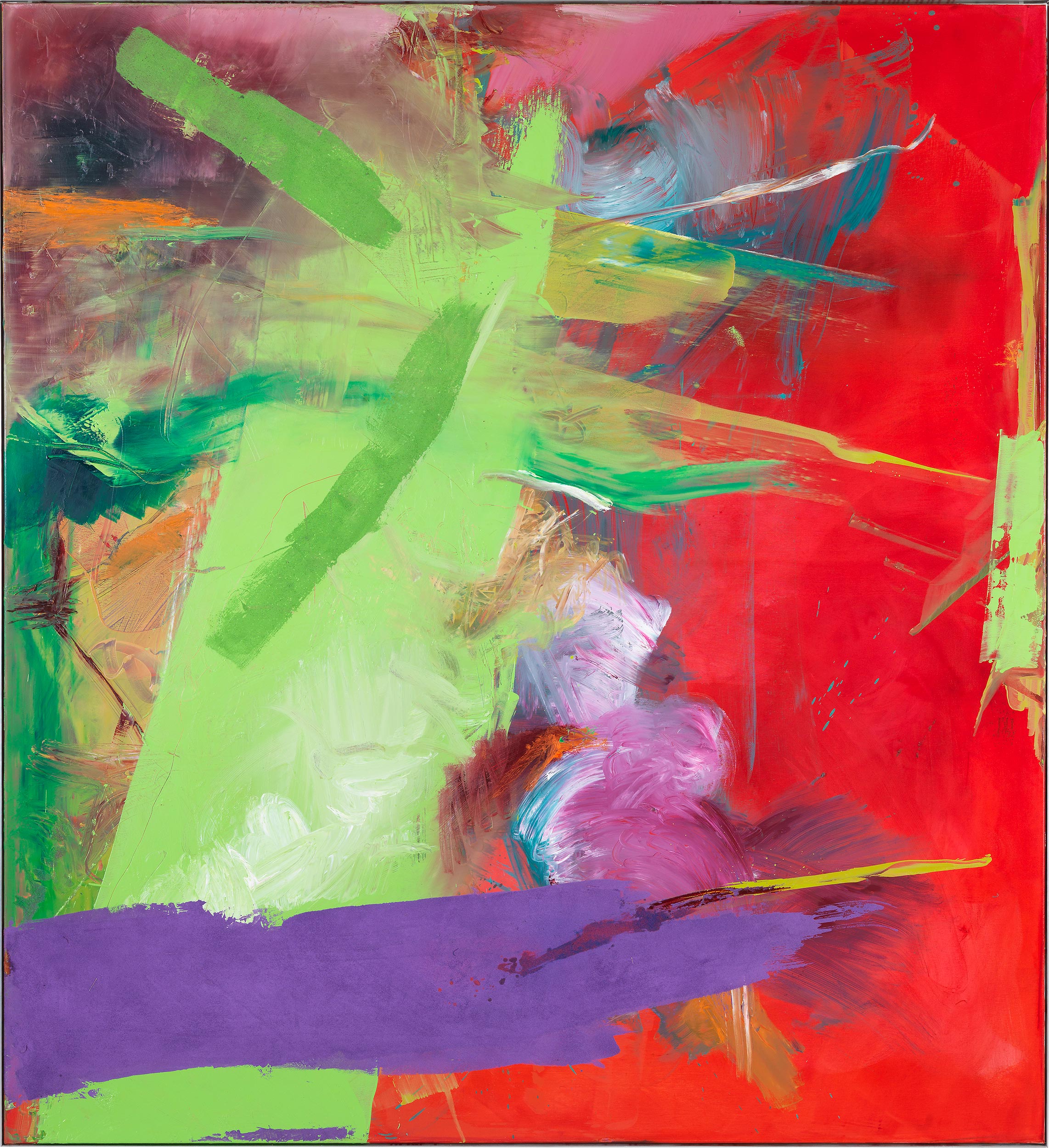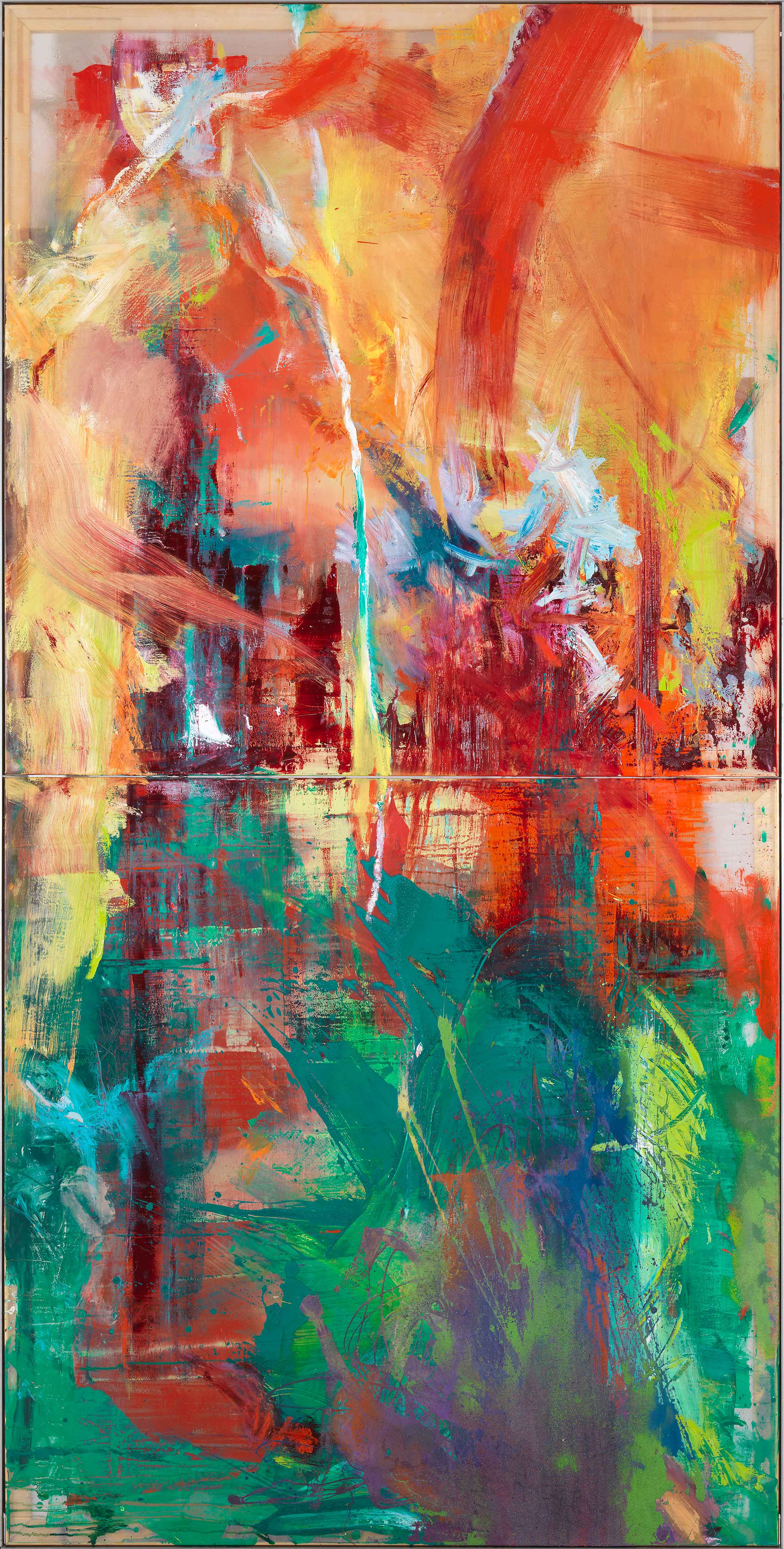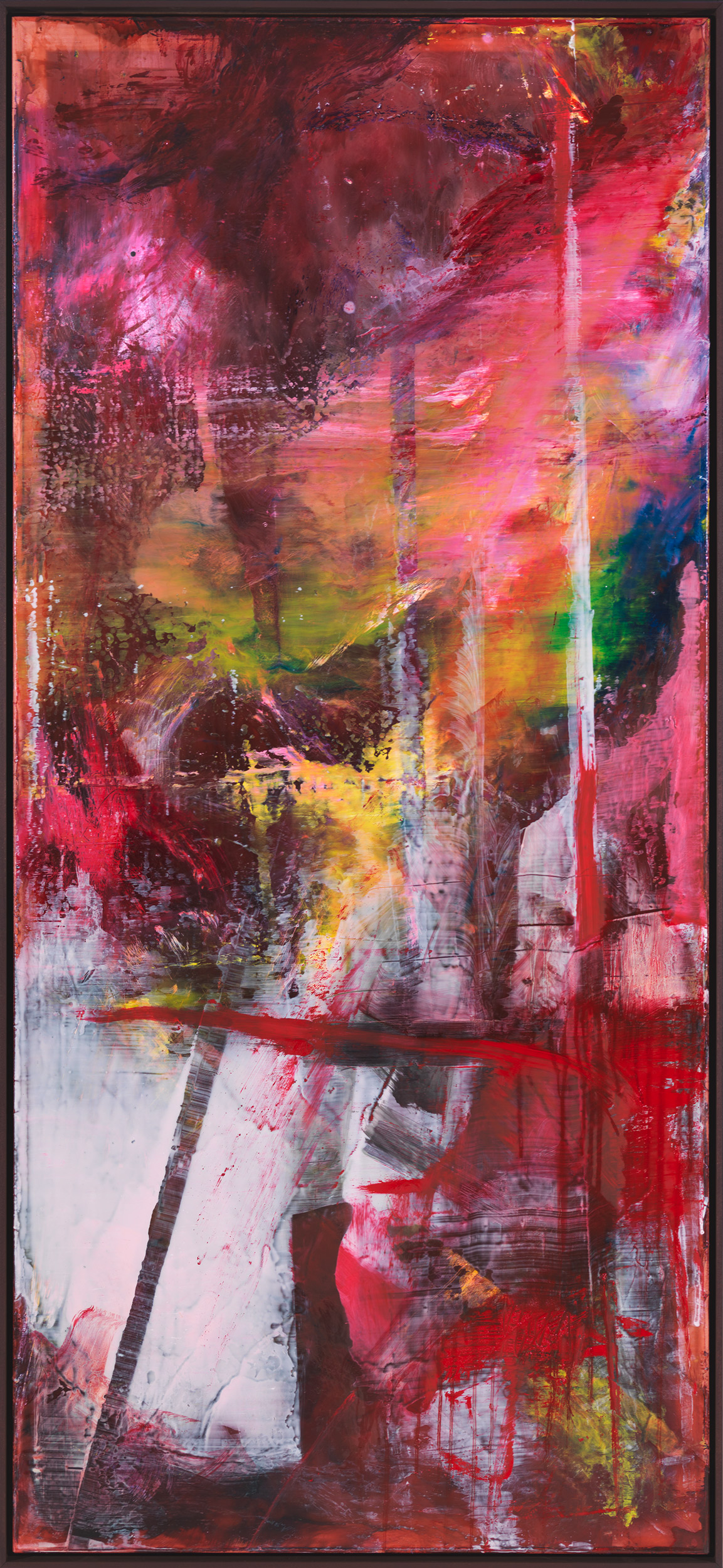 titel: rot braun gelböl auf lackgetränktem gewebe 200 cm × 90 cm2017 güterslohwerkverzeichnis:1037privatsammlung